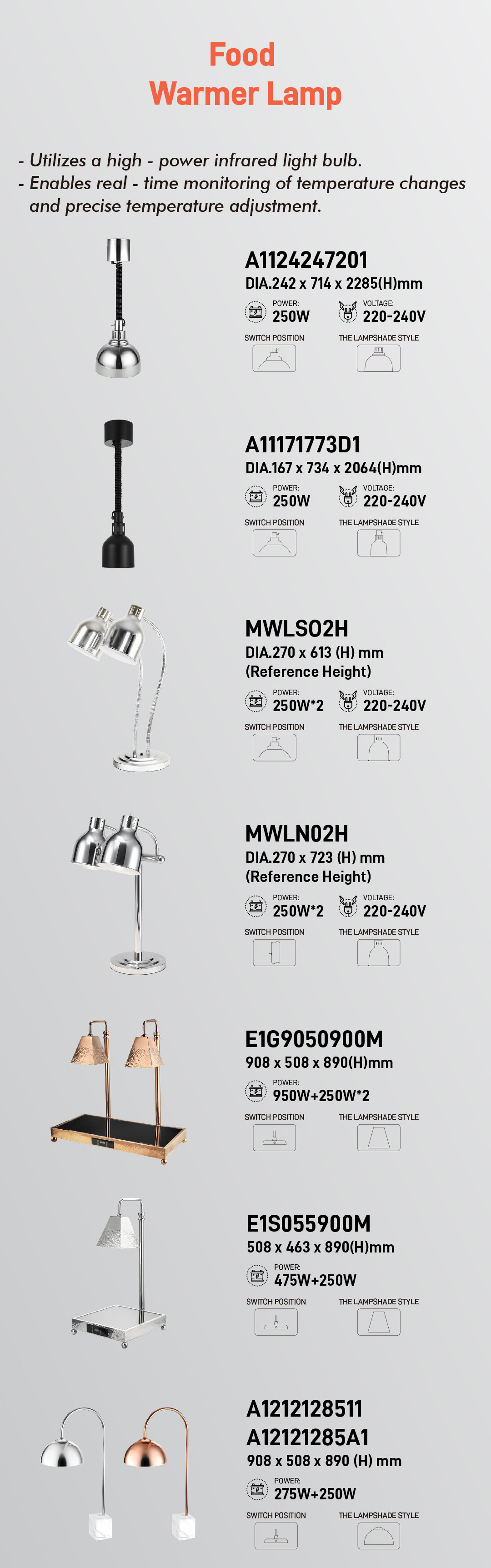 हमारी नवीनतम फ़ूड वार्मर लैंप सीरीज़—यह सुनिश्चित करने के लिए इंजीनियर की गई है कि आपके विशिष्ट व्यंजन मेज पर ठीक वैसे ही पहुँचें जैसे कि गरम, ताज़ा और दिखने में आश्चर्यजनक।